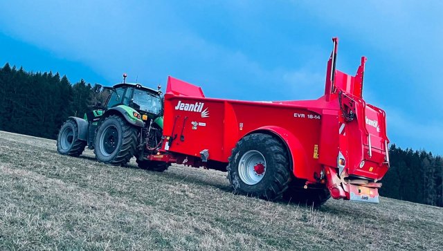 Výše zmíněným požadavkům vyhovují dvě i tyto dvě rozmetadla tuhých hnojiv u nás, modely EVR 13-10 a EVR 18-14 od francouzské firmy Jeantil. Jejich charakteristikou je úzká korba široká 1,50 m a řetězový dopravník. Využívají rozmetací ústrojí EPAN 5, tedy univerzální typ využitelný ve spojení se všemi materiály a se schopností rozmetat i při vysokých dávkách hnojiv. Rozmetadla jsou dodávané v jednonápravovém provedení.