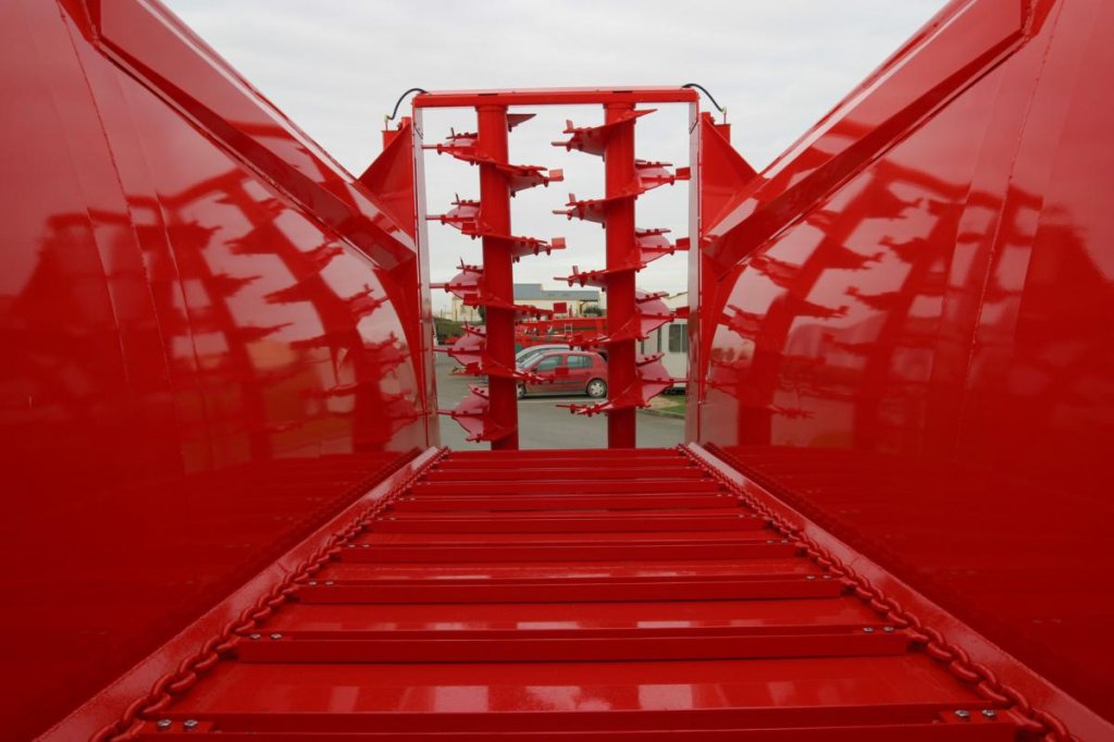 Vyprazdňování materiálu je prováděno řetězovým podlahovým dopravníkem (se dvěma řetězy o průměru 14 nebo 16 mm) se šroubovanými příčkami. Jeho rychlost je regulována řidičem přímo z kabiny prostřednictvím proporcionálního elektrického terminálu. Obsluha skrze něj zasílá stroji pokyn, aby aplikoval jen takovou dávku hnojiva, která je aktuálně zapotřebí. Opční elektronický systém ovládání SMART navíc disponuje vážicím systémem a umožňuje nastavení vlastní dávky na hektar.